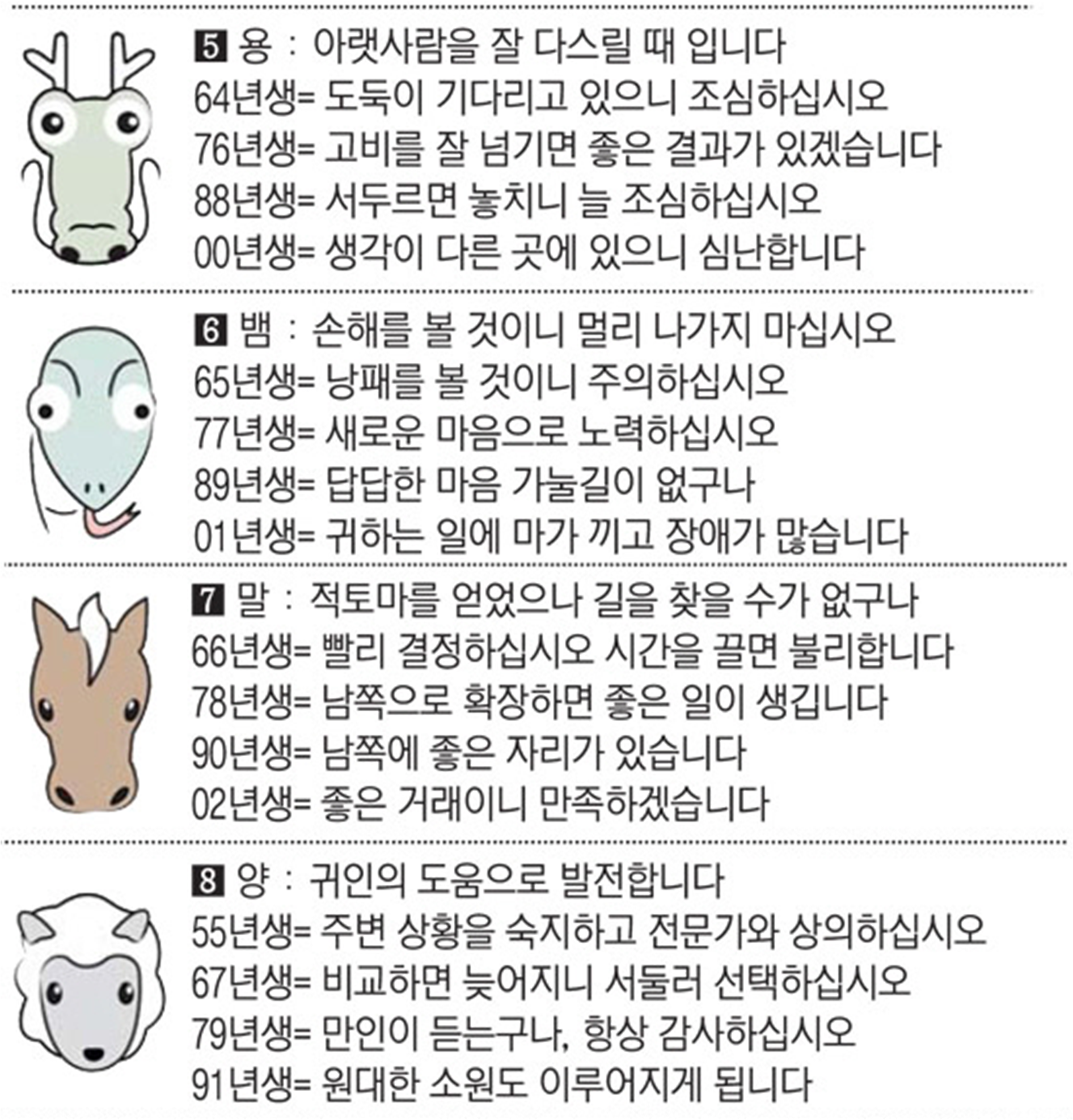 2022년 9월 7일 수요일 띠별운세