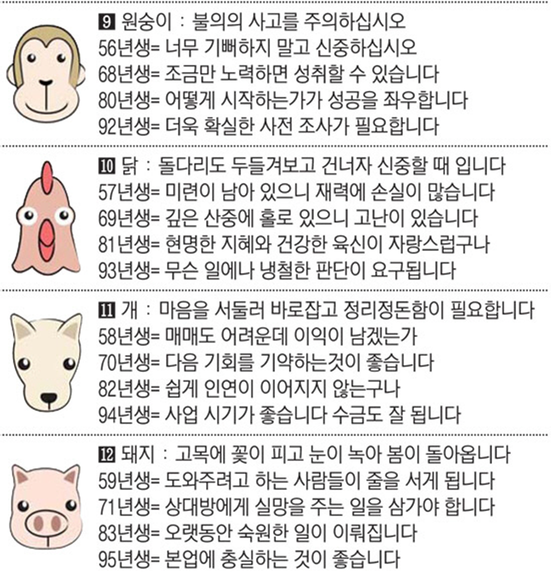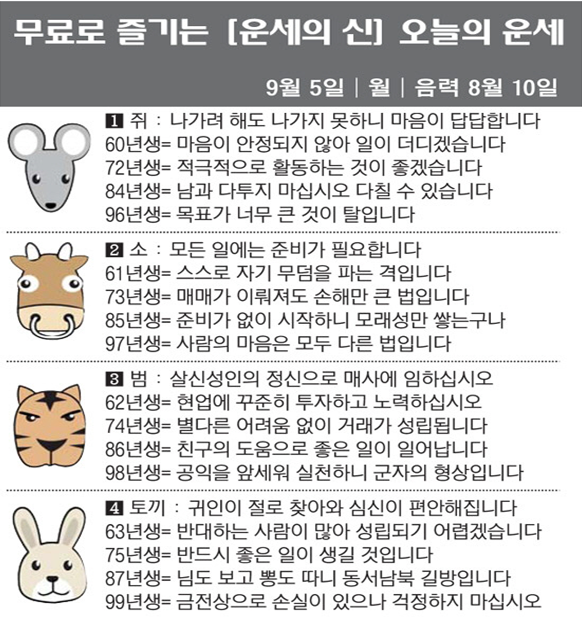 2022년 9월 1일 목요일 띠별운세