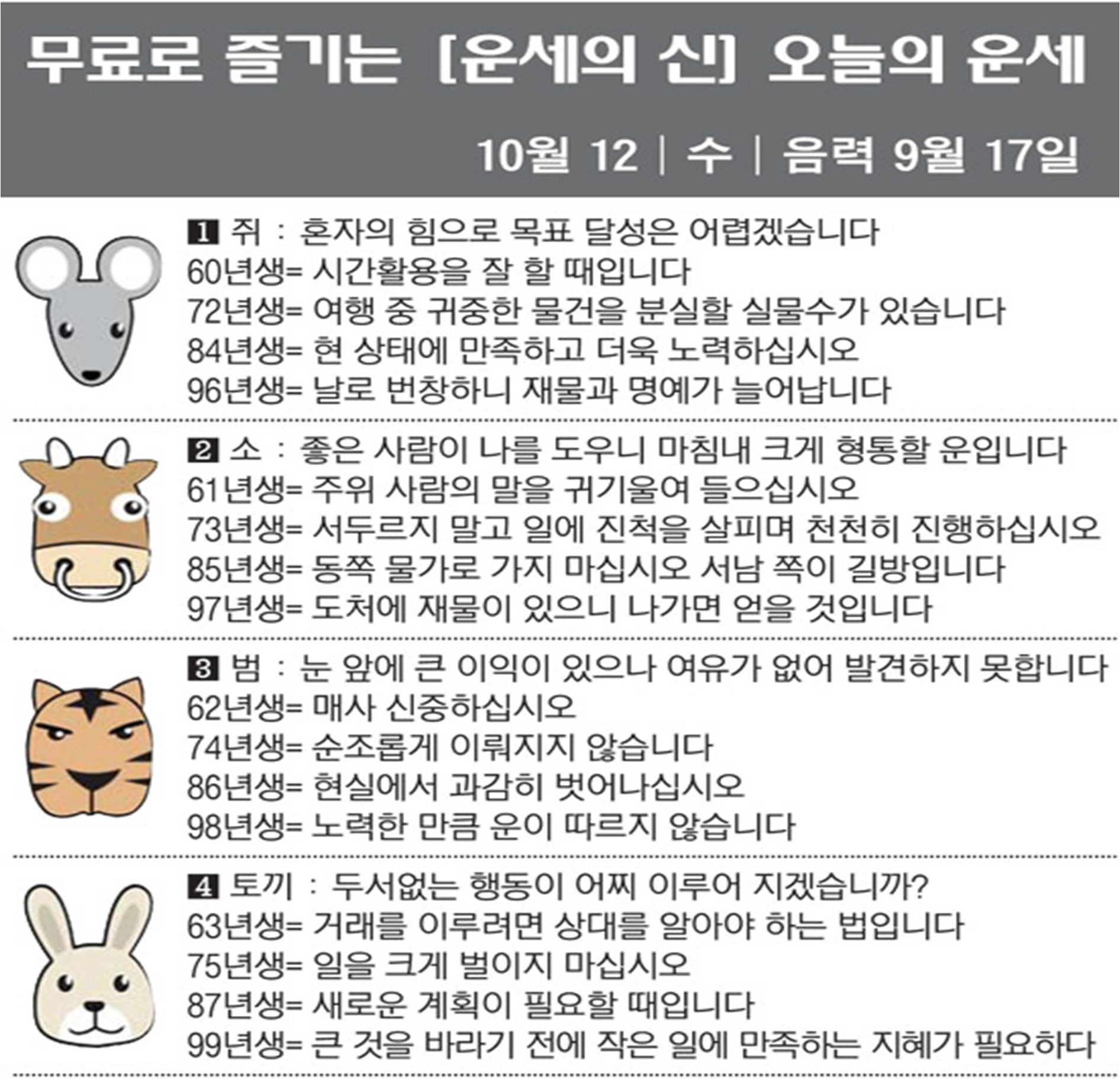 #운세의신 에서만 무료로 제공하는 운세 모음!▼
