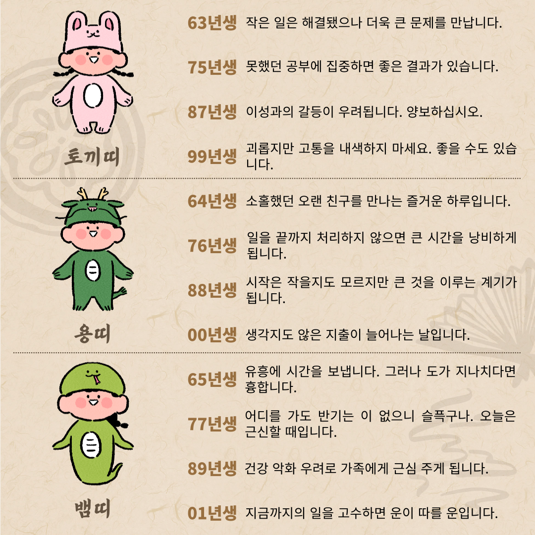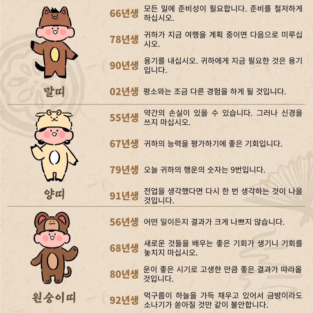 2024년 8월 12일 오늘의 띠별운세를 알려드립니다🌄
