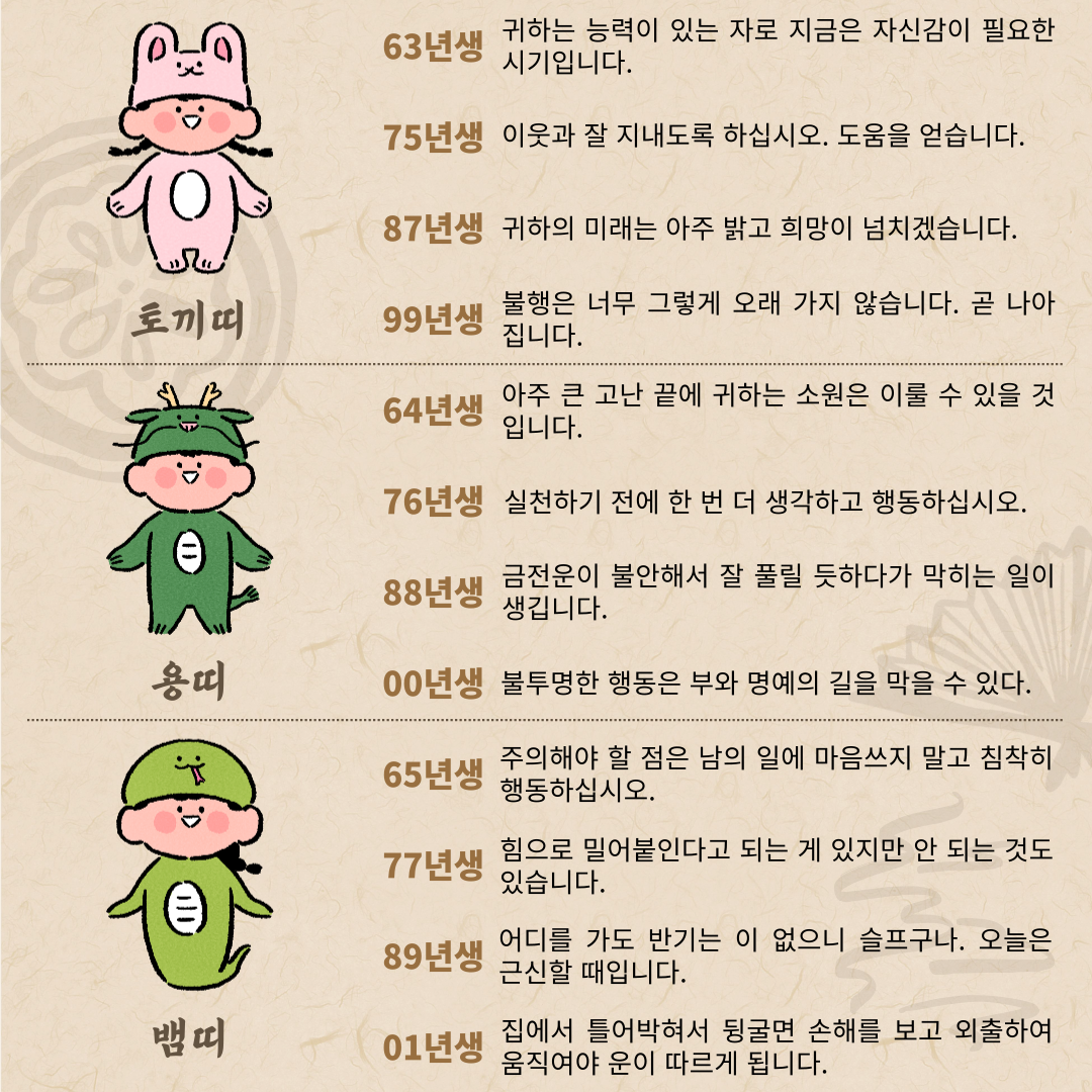 2024년 8월 19일 오늘의 띠별운세 (0) | 2024.08.19 |