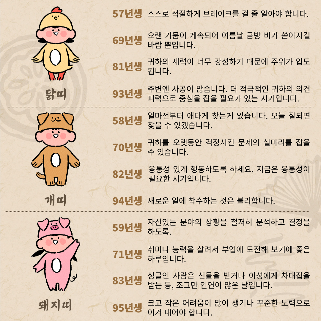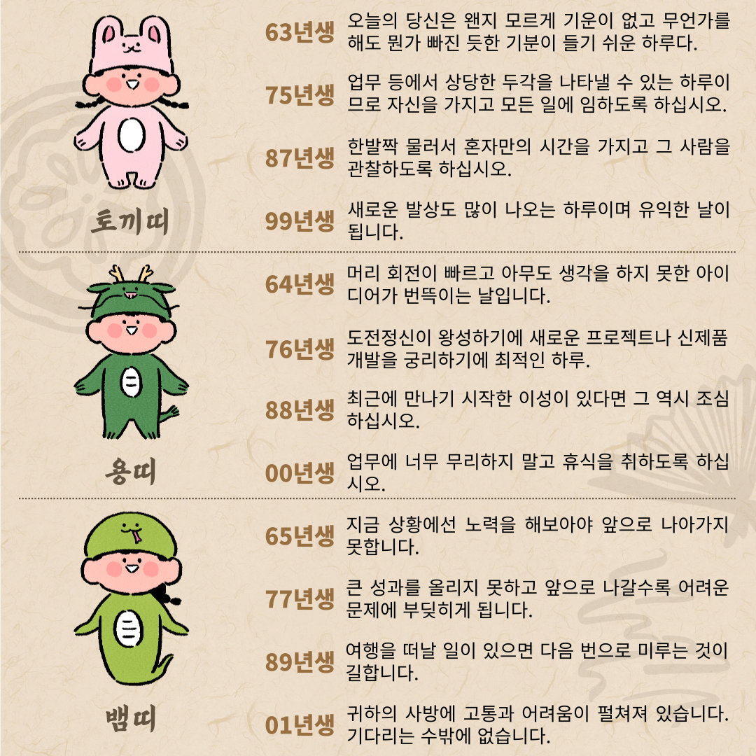 2024년 10월 4일 오늘의 띠별운세 (1) | 2024.10.04 |