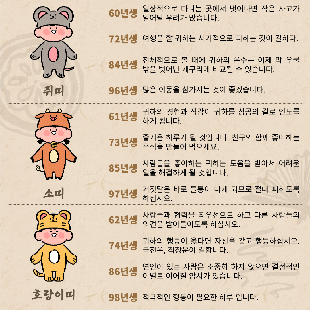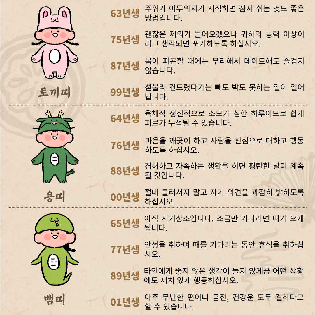 2024년 11월 26일 오늘의 띠별운세 (1) | 2024.11.26 |