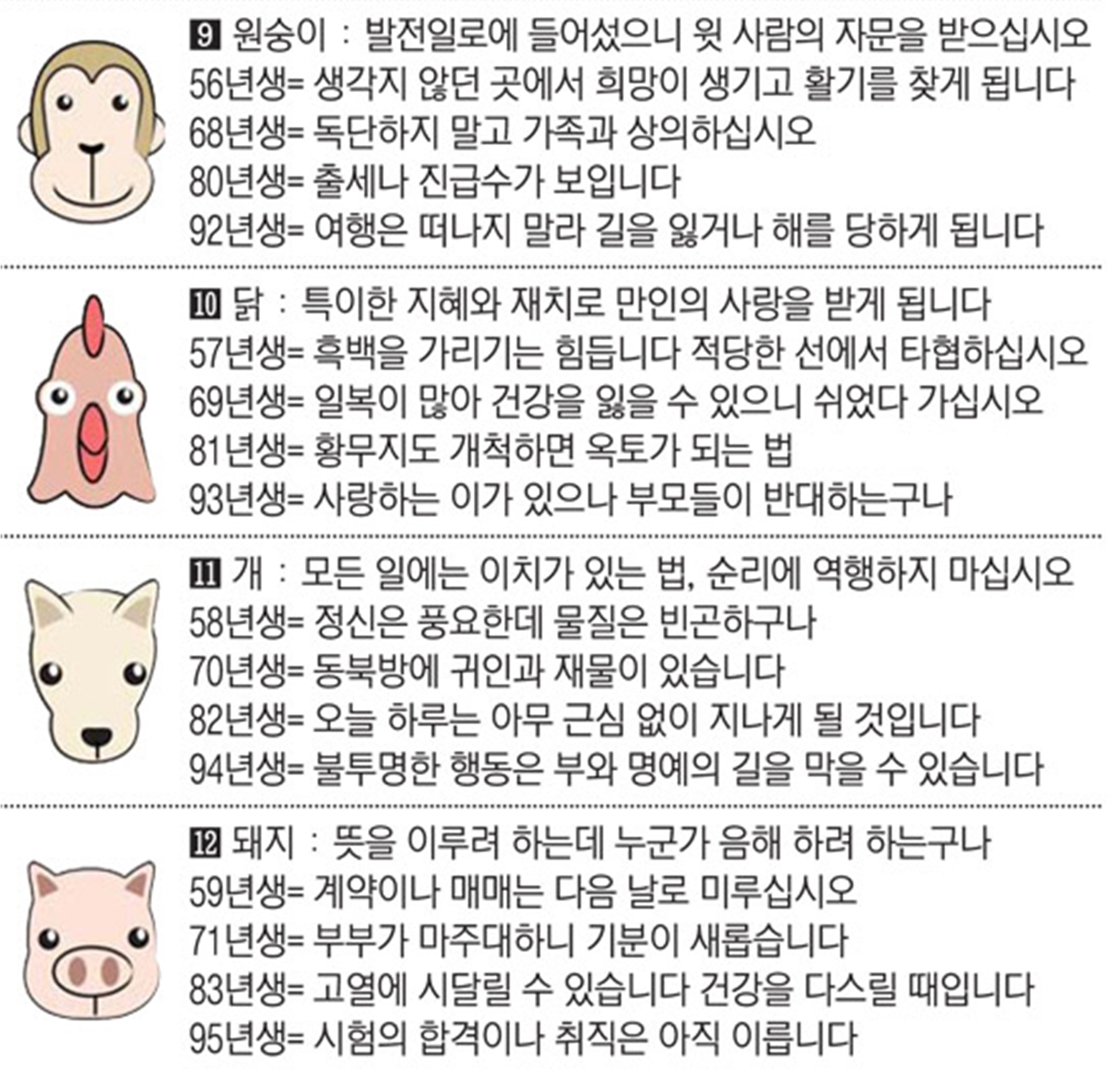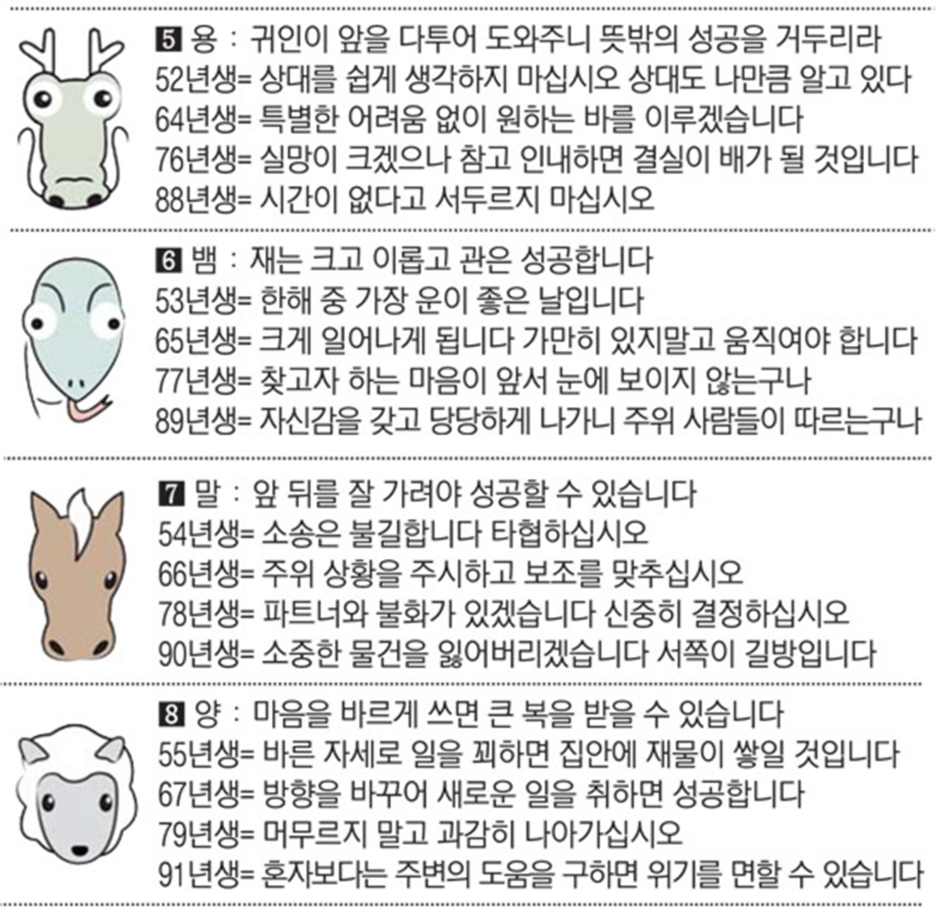 2022년 5월 25일 수요일 띠별운세