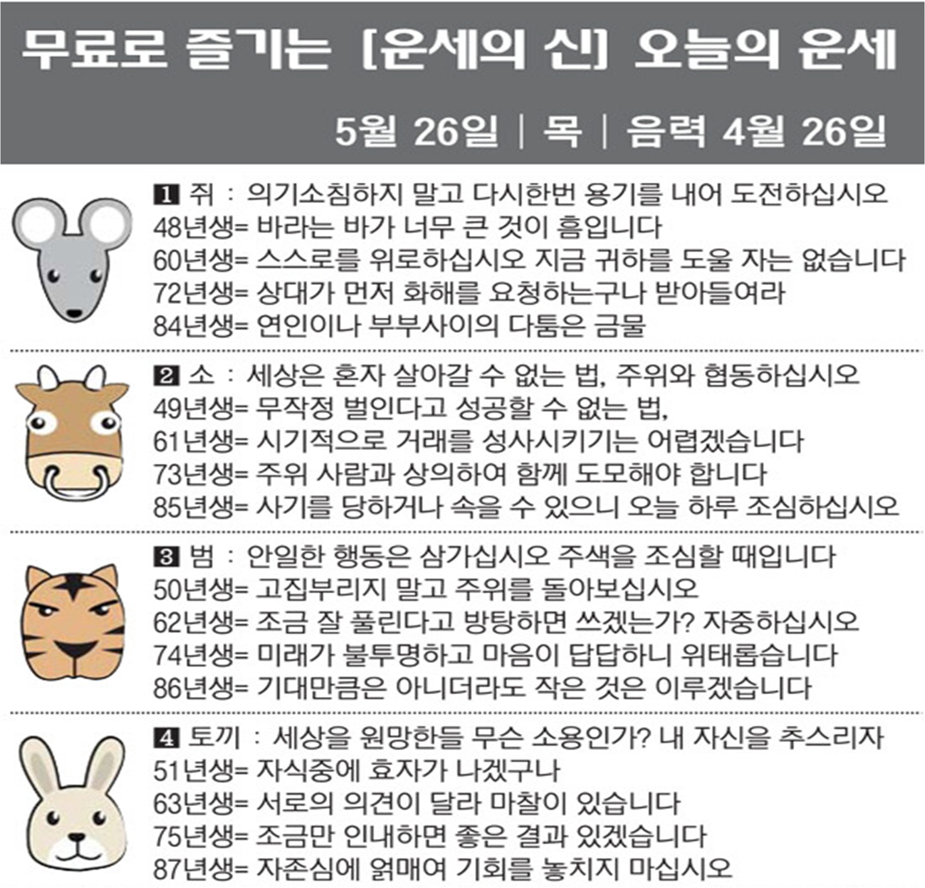 2022년 5월 26일 목요일 띠별운세