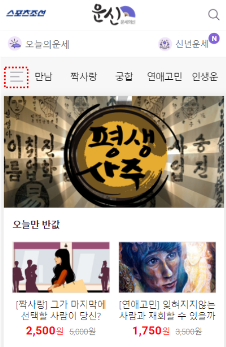 대한민국 1등 스포츠 신문인 스포츠조선이 직접 운영하는 운세 사이트인 운세의 신인데요,복잡한 회원가입 절차 없이 국내 최고의 사주 전문가 7명이 사주명리학에 기초해 작성한 논리적이고 날카로운 분석을 무료로 받아볼 수 있습니다.