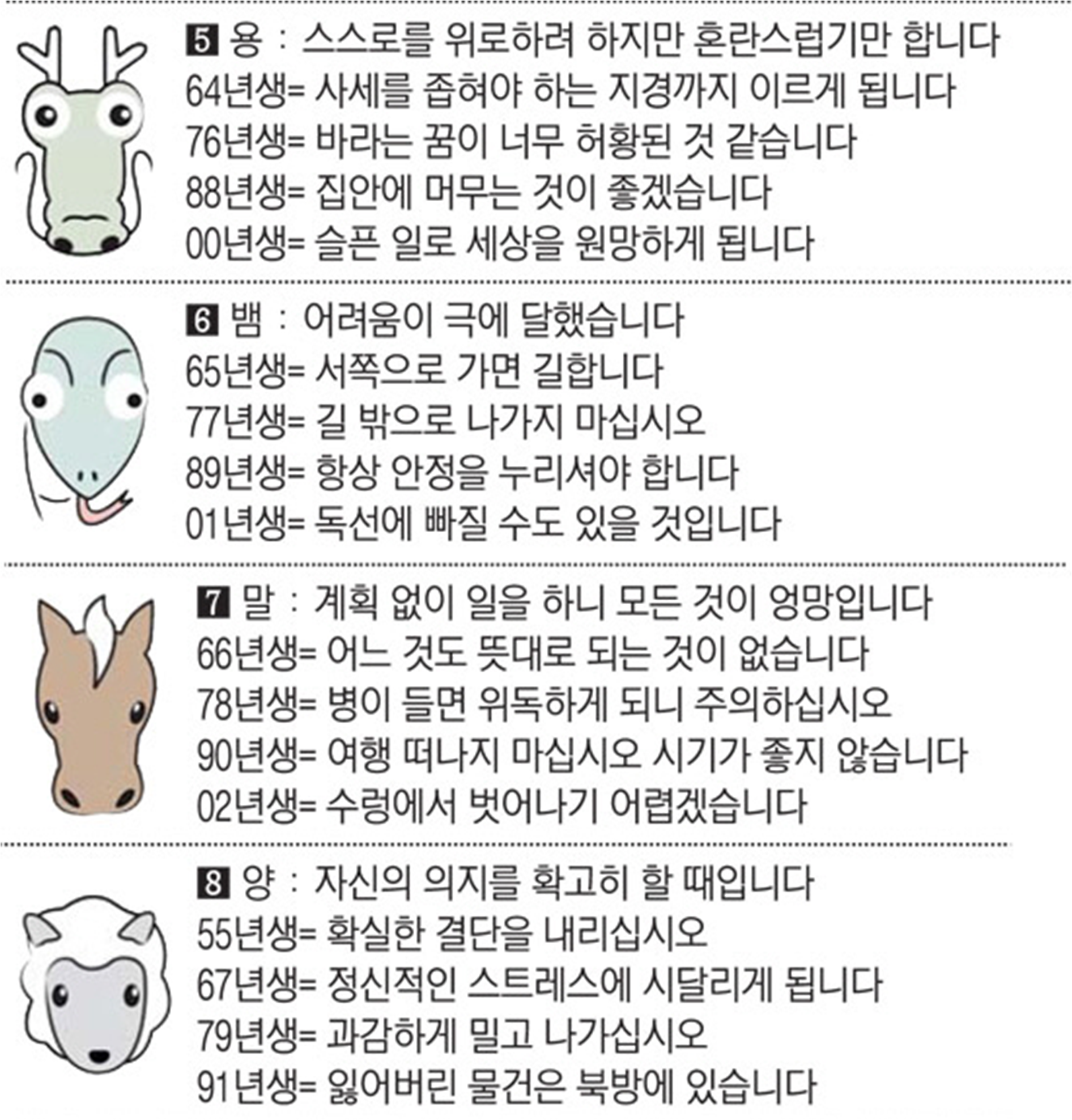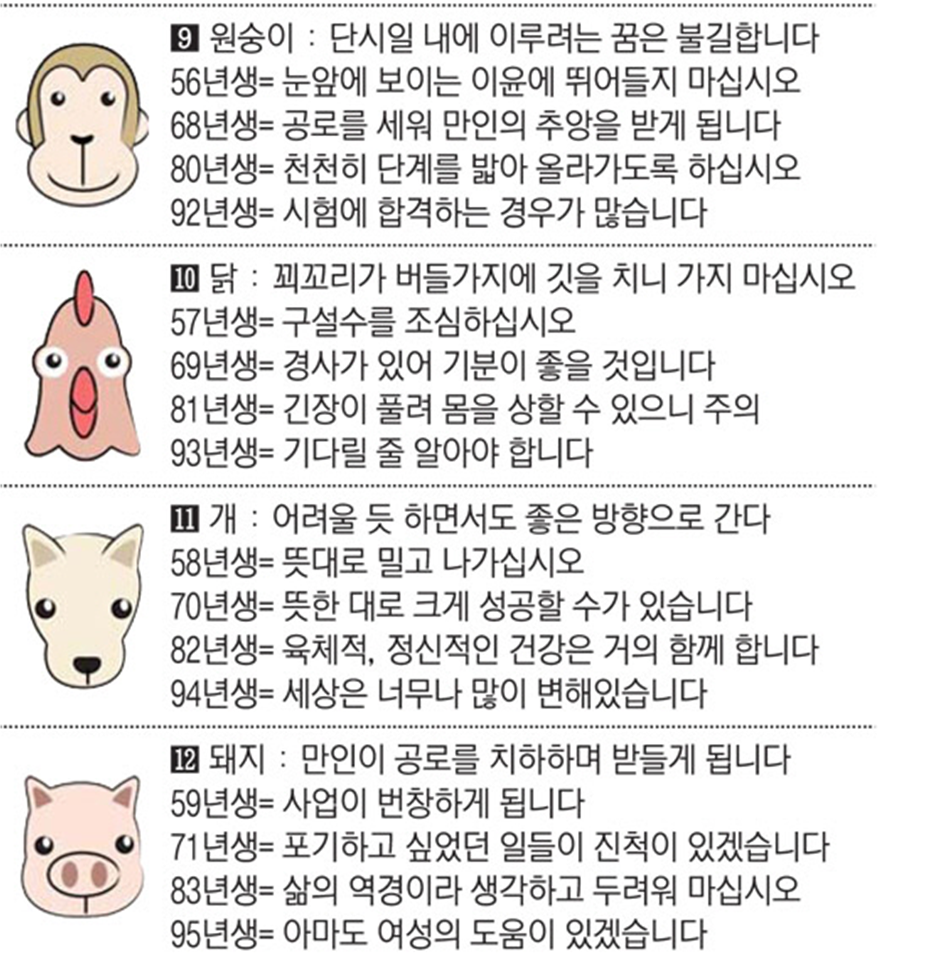 오늘의 운세 2022년 6월 30일 목요일 띠별운세 스포츠조선 2022. 6. 30. 08:46 #운세의신 에서만 무료로 제공하는 운세 모음!▼ 1. #연애궁합 - http://bit.ly/2HGcNGC 2. #오늘의운세 - http://bit.ly/2Kvo4ra 3. #운명의상대 - http://bit.ly/2xjt3ss 4. #평생사주 - http://bit.ly/2rg8WWv 5. #재물운 -http://bit.ly/2rdQz4A 6. #자녀운 - http://bit.ly/2krNsSx