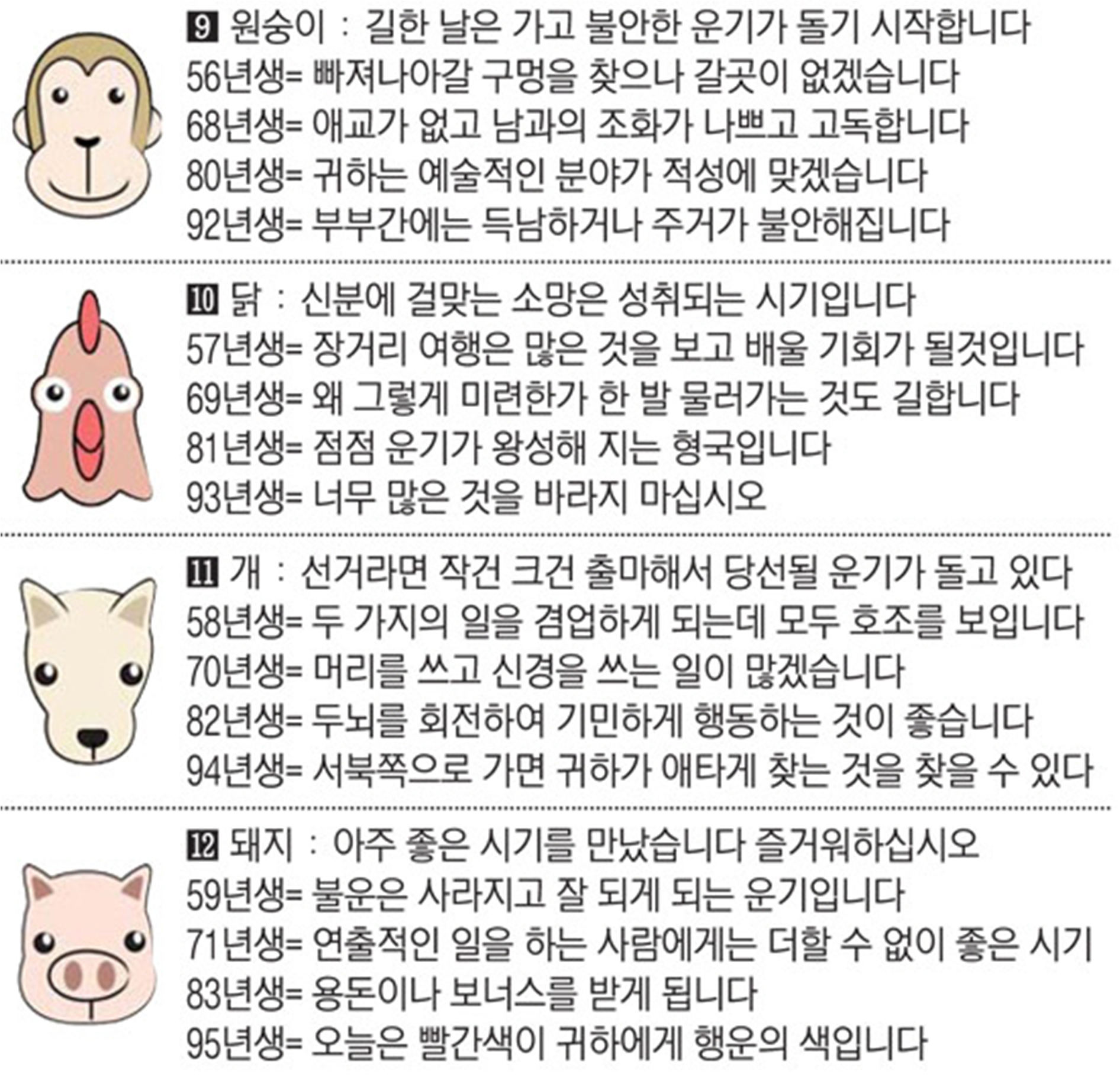 오늘의 운세 2022년 7월 19일 화요일 #띠별운세 스포츠조선 2022. 7. 19. 08:39 #운세의신 에서만 무료로 제공하는 운세 모음!▼ 1. #연애궁합 - http://bit.ly/2HGcNGC 2. #오늘의운세 - http://bit.ly/2Kvo4ra 3. #운명의상대 - http://bit.ly/2xjt3ss 4. #평생사주 - http://bit.ly/2rg8WWv 5. #재물운 -http://bit.ly/2rdQz4A 6. #자녀운 - http://bit.ly/2krNsSx