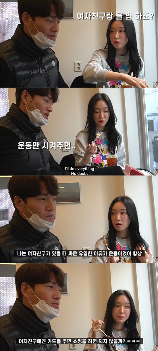 조카들과 커피와 디저트를 마시며 조카인 가수 소야가 "만약에 (여자친구가) '나 디저트 먹고싶어' 했을 때 안 갈수는 없잖아"라고 이야기 했고, 김종국은 "와야지. 난 다해. 운동만 시켜주면"이라고 답해 웃음을 안겼다. 그러면서 "나는 여자친구가 있을 때 싸운 유일한 이유가 운동이었다. 항상"이라고 덧붙였다.