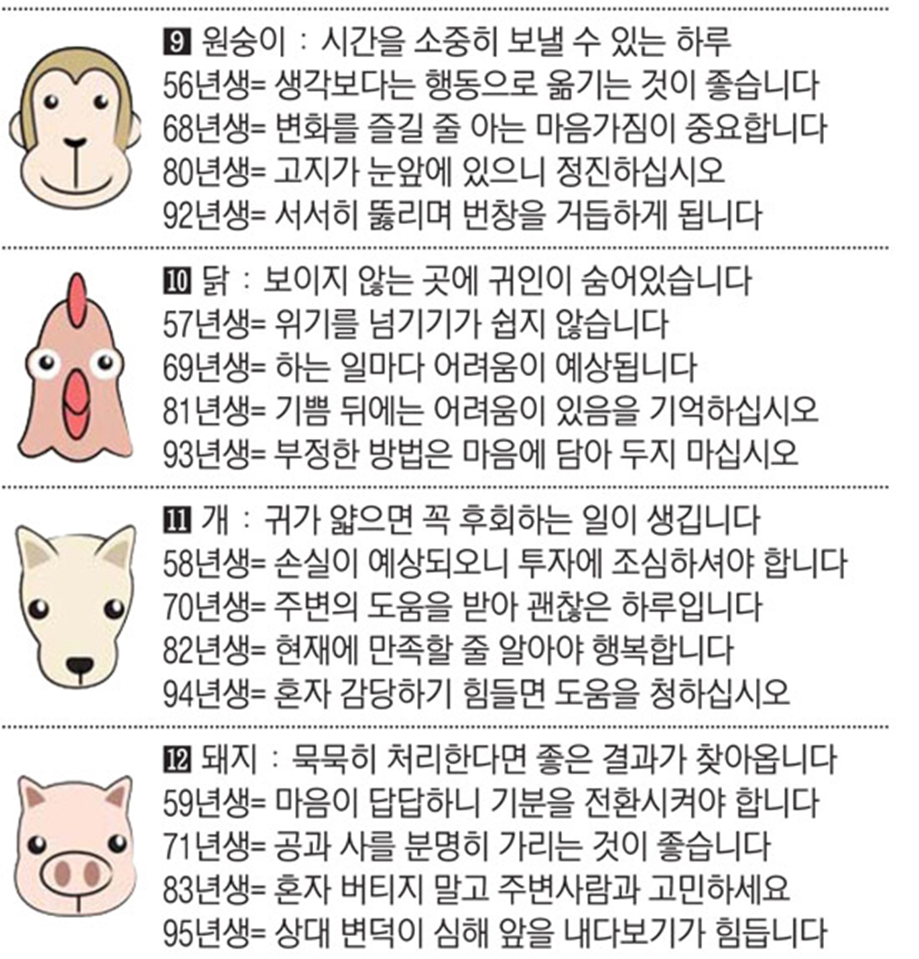2022년 8월 11일 목요일 띠별운세