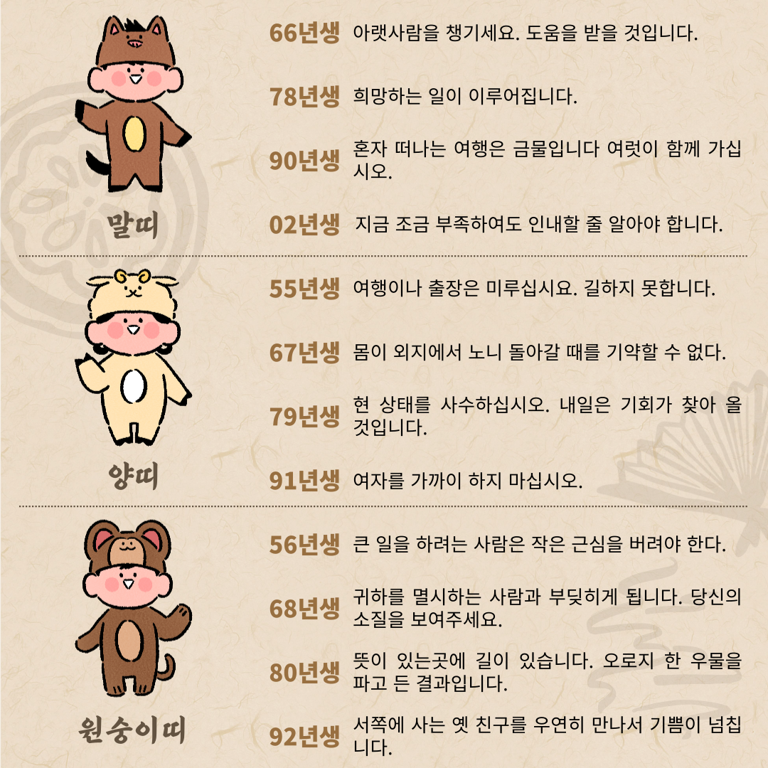매달 달라지는 운명을 섬세하게 좇아가세요