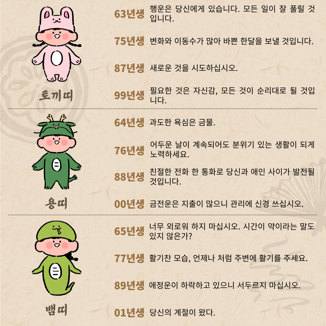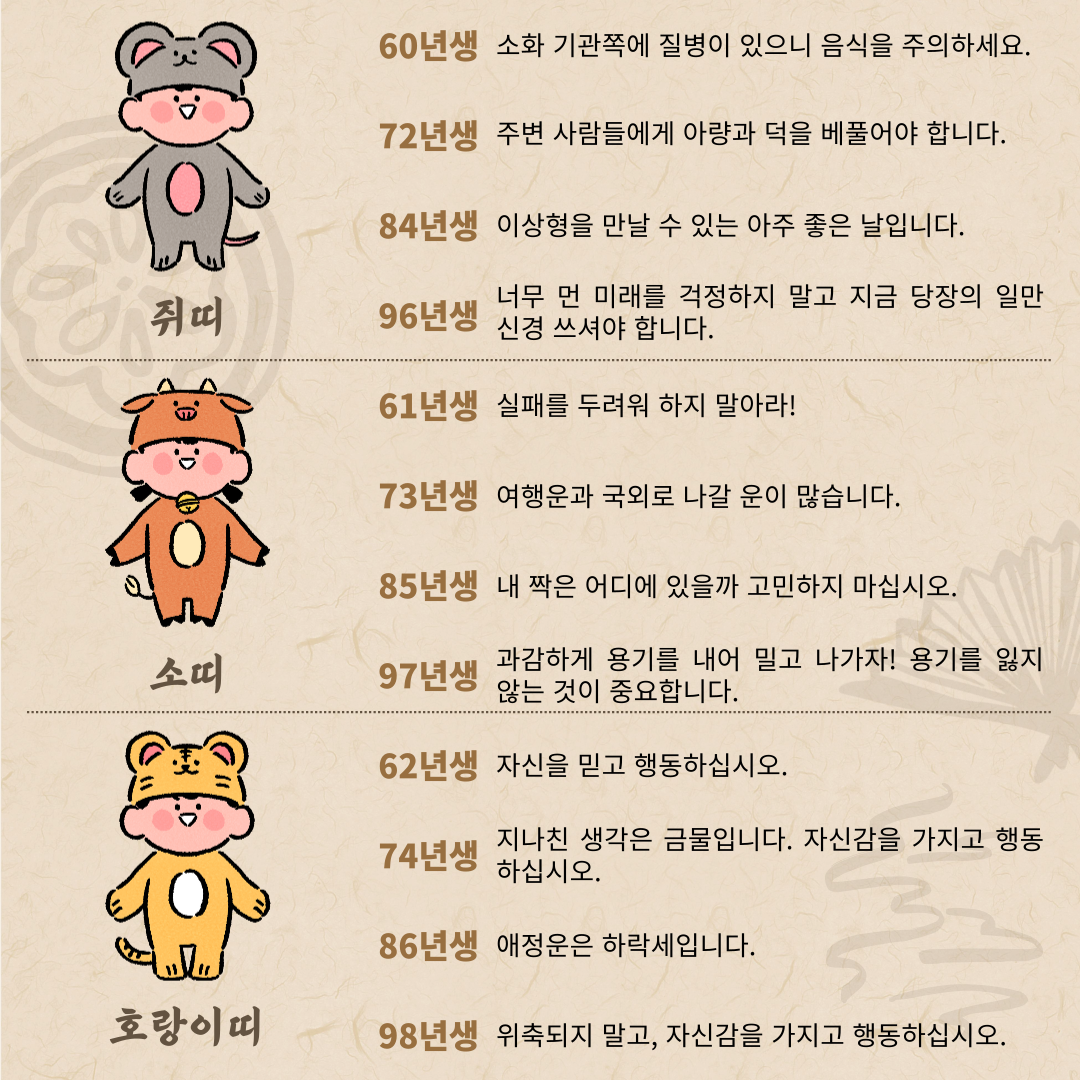 2025년 1월 20일 오늘의 띠별운세