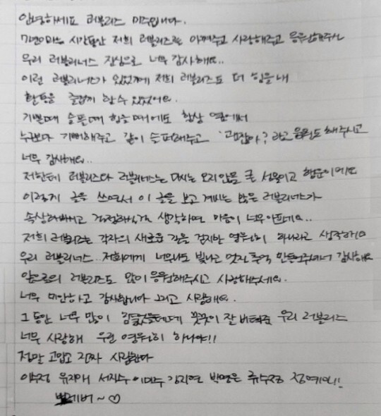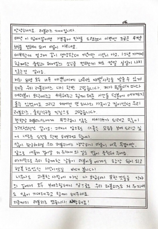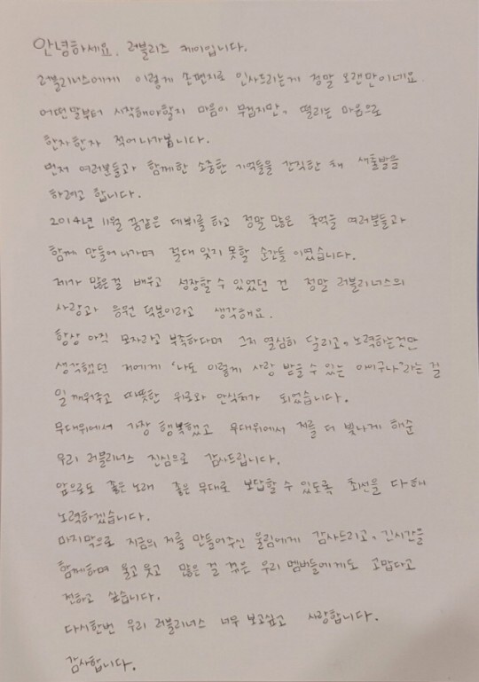 러블리즈 멤버들 또한 손편지를 통해 팬들에게 인사를 건넸다.